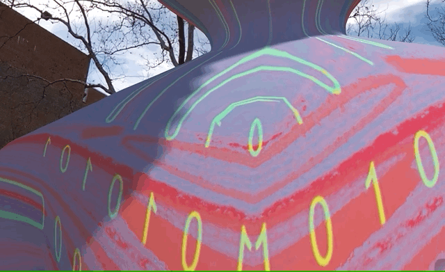 This augmented reality piece invites viewers to use an iPad to enter a parallel world, one that appears more real than the visible world we perceive with our own eyes.